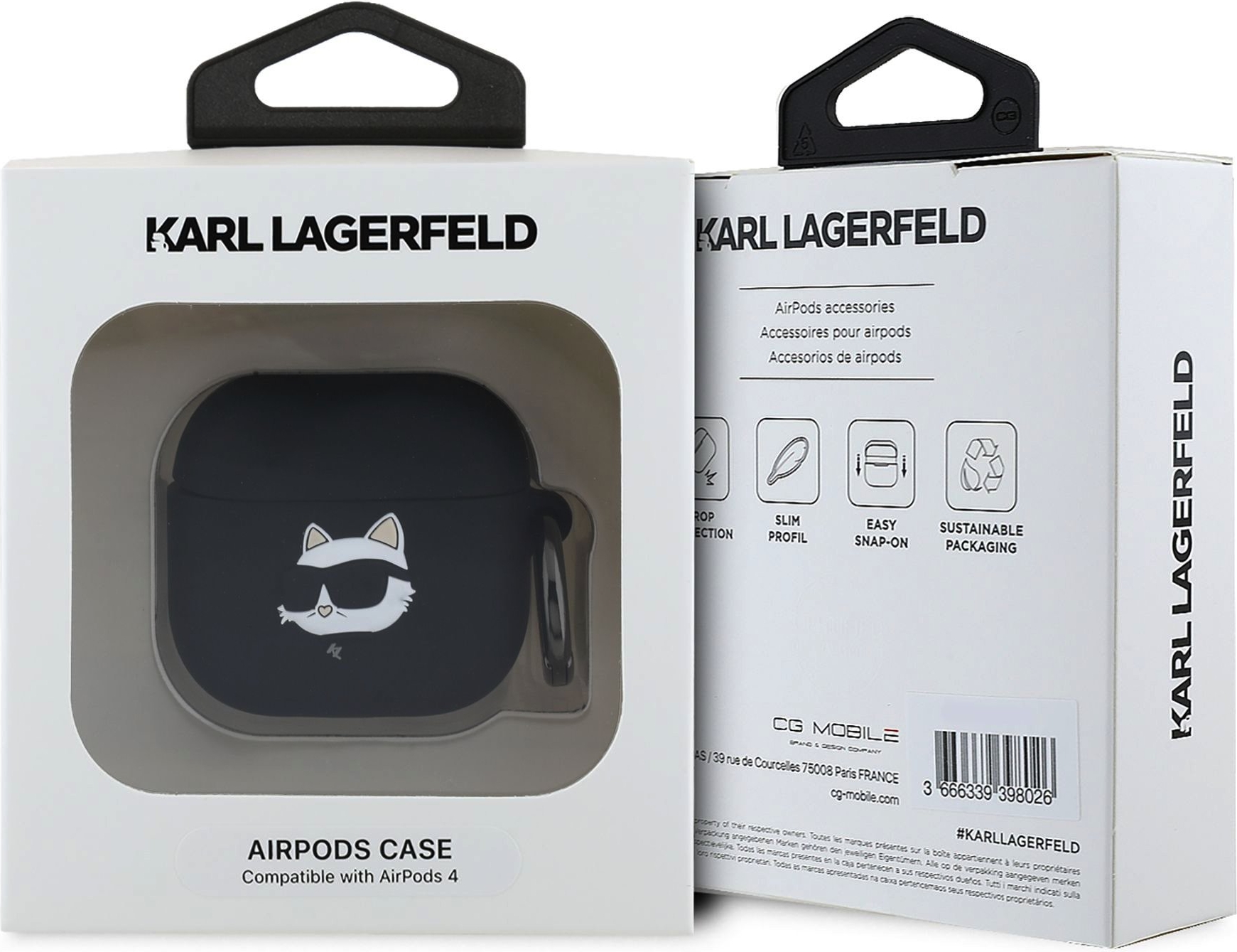 Dieses maßgeschneiderte Etui passt sich perfekt der Form Ihrer AirPods an und garantiert eine sichere Aufbewahrung. Hergestellt aus strapazierfähigem Silikon, fühlt es sich angenehm an und ist mit einem plastischen Logo von Choupette, der ikonischen Katze von Karl Lagerfeld, verziert. Darüber hinaus sorgt die praktische Karabinerbefestigung dafür, dass Sie Ihre AirPods bequem an Ihrer Tasche oder Ihrem Rucksack befestigen können.