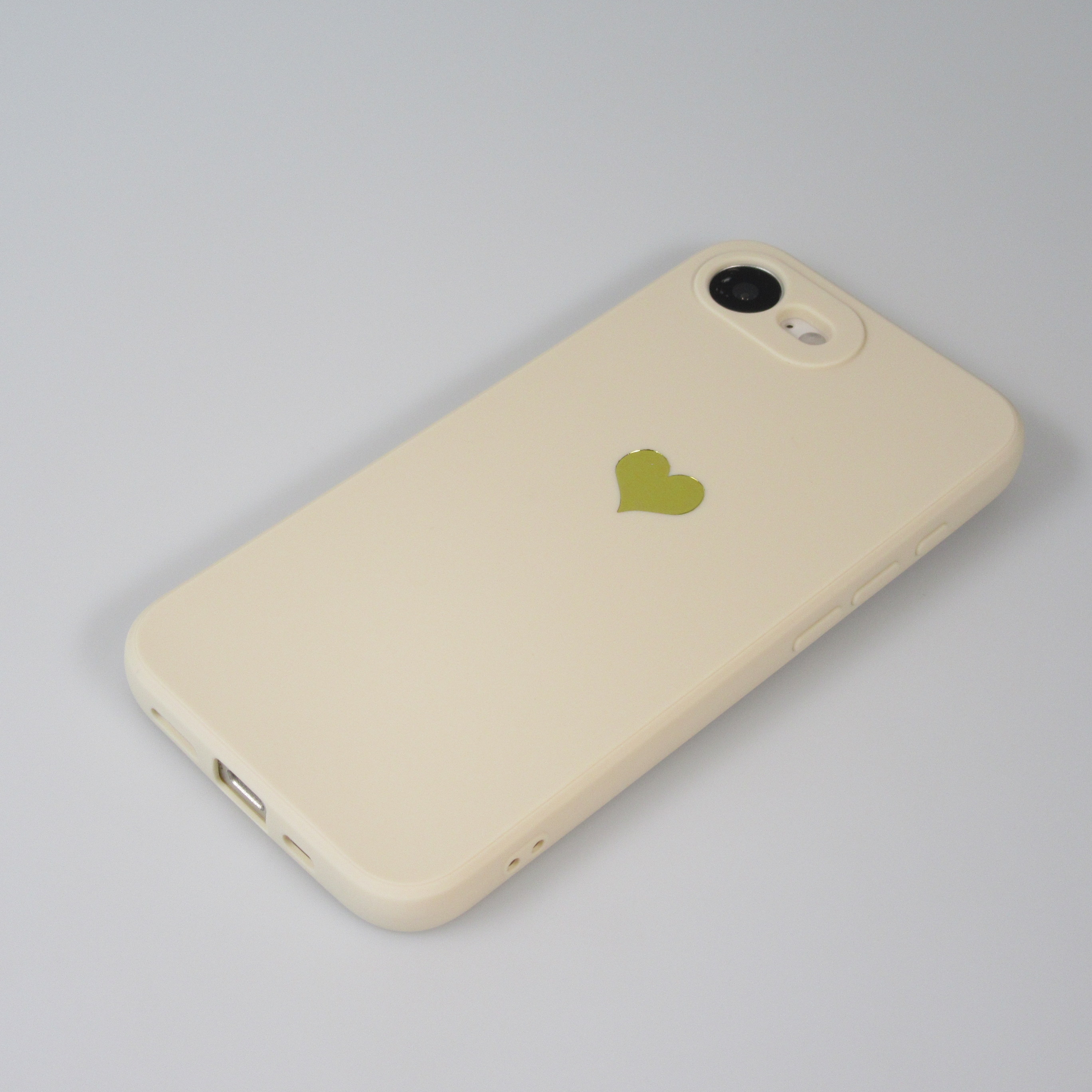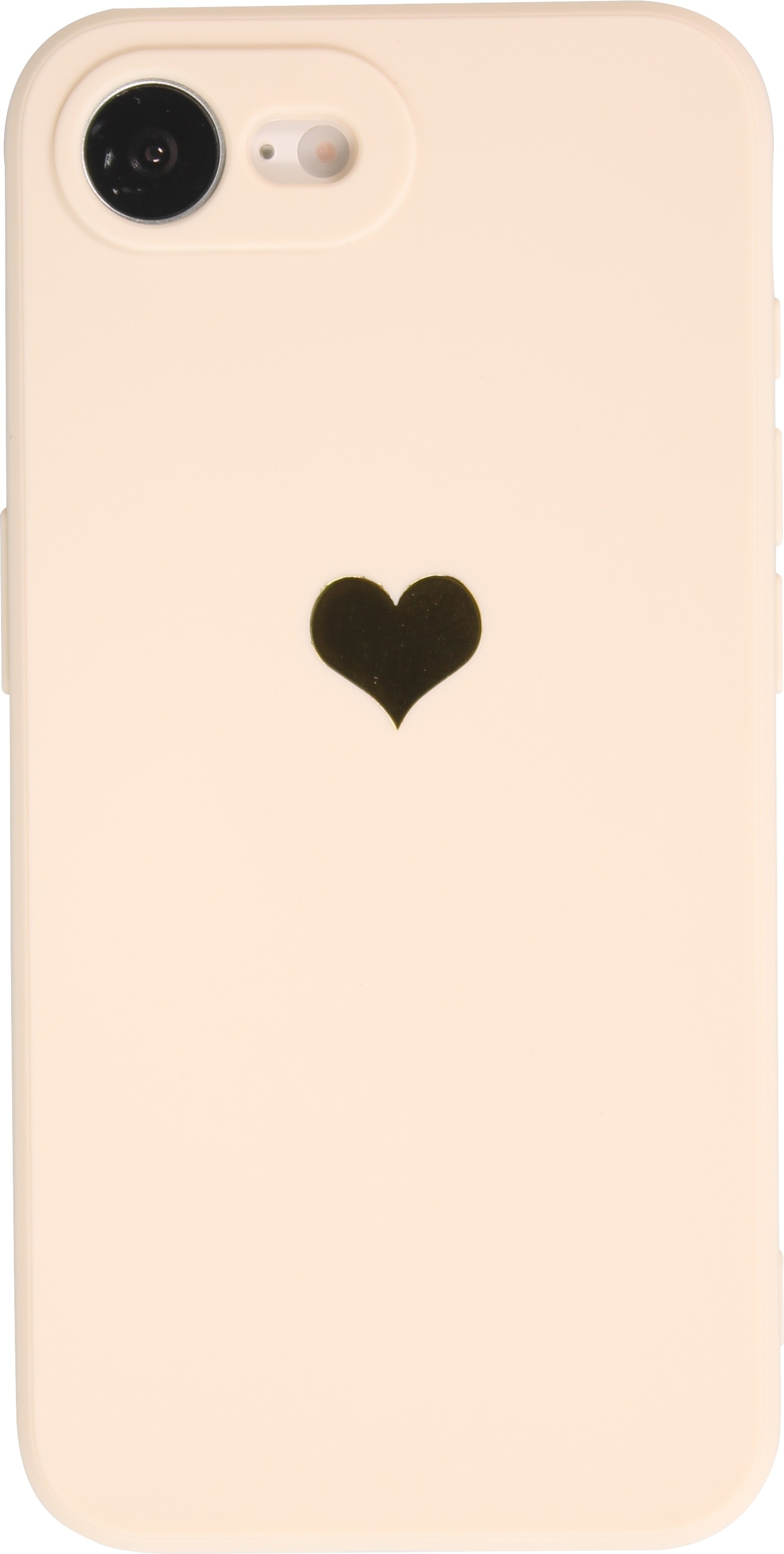 Eine schlichte aber effiziente Silikon Schutzhülle für das iPhone 16e mit einem goldenen Herzen auf der Rückseite. Schützt das Smartphone vor Kratzern und anderen Schäden. Die Hülle bietet ausserdem einen zusätzlichen Schutz für das Kameragehäuse.