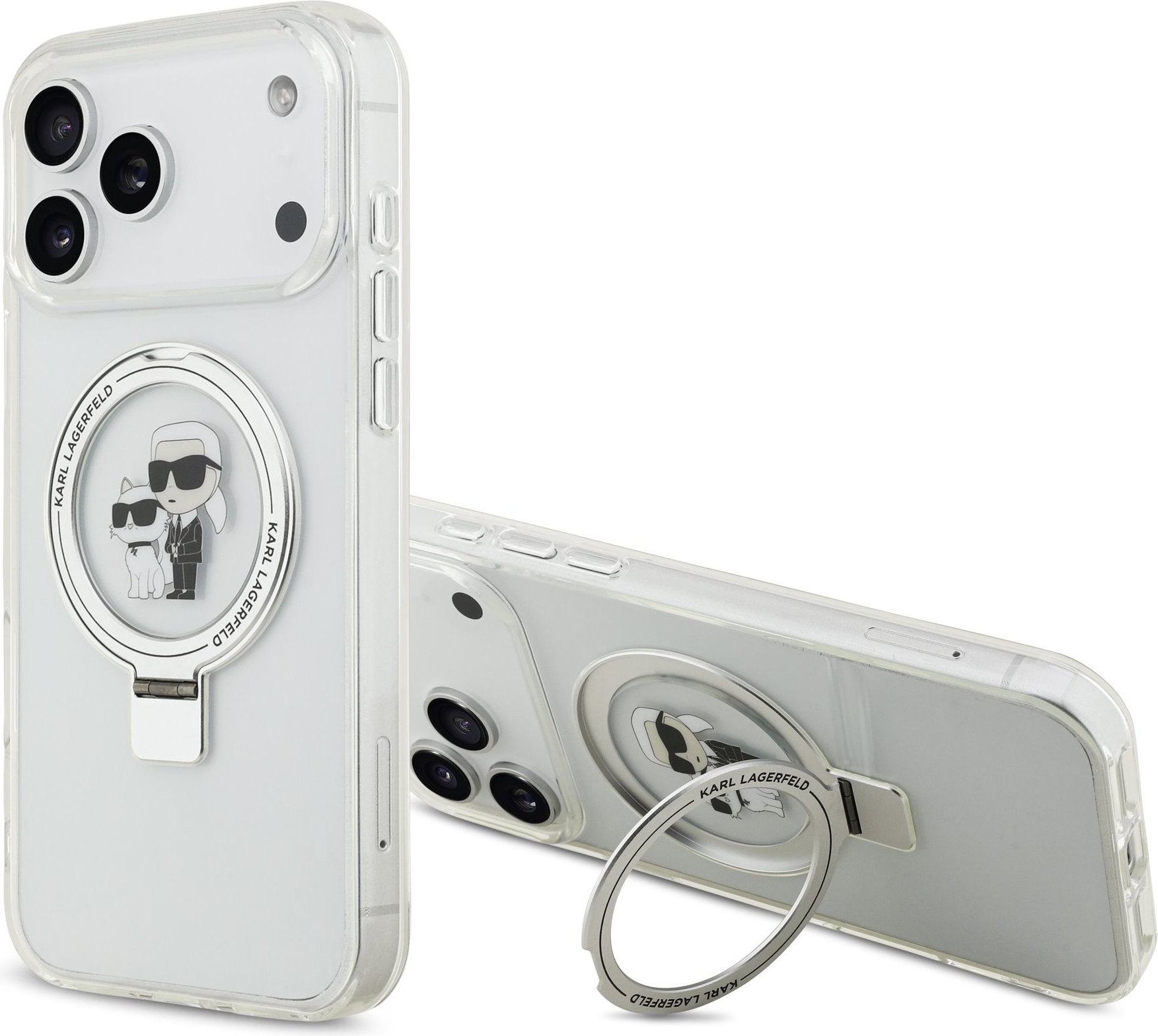 Der Karl Lagerfeld Ringstand Karl and Choupette MagSafe Handyhülle ist das perfekte Accessoire für alle Stil- und Praktikabilitätsliebhaber. Hergestellt aus einer Kombination von robustem PC-Kunststoff auf der Rückseite und weichem TPU an den Seiten, bietet diese Hülle eine ideale Symbiose aus Widerstandsfähigkeit und Komfort. Der flexible und sanfte Materialmix passt sich perfekt der Form Ihres Smartphones an und ermöglicht einen einfachen Zugang zu allen Tasten und Anschlüssen, während die Textur der Hülle dafür sorgt, dass sie angenehm in der Hand liegt und nicht rutscht.