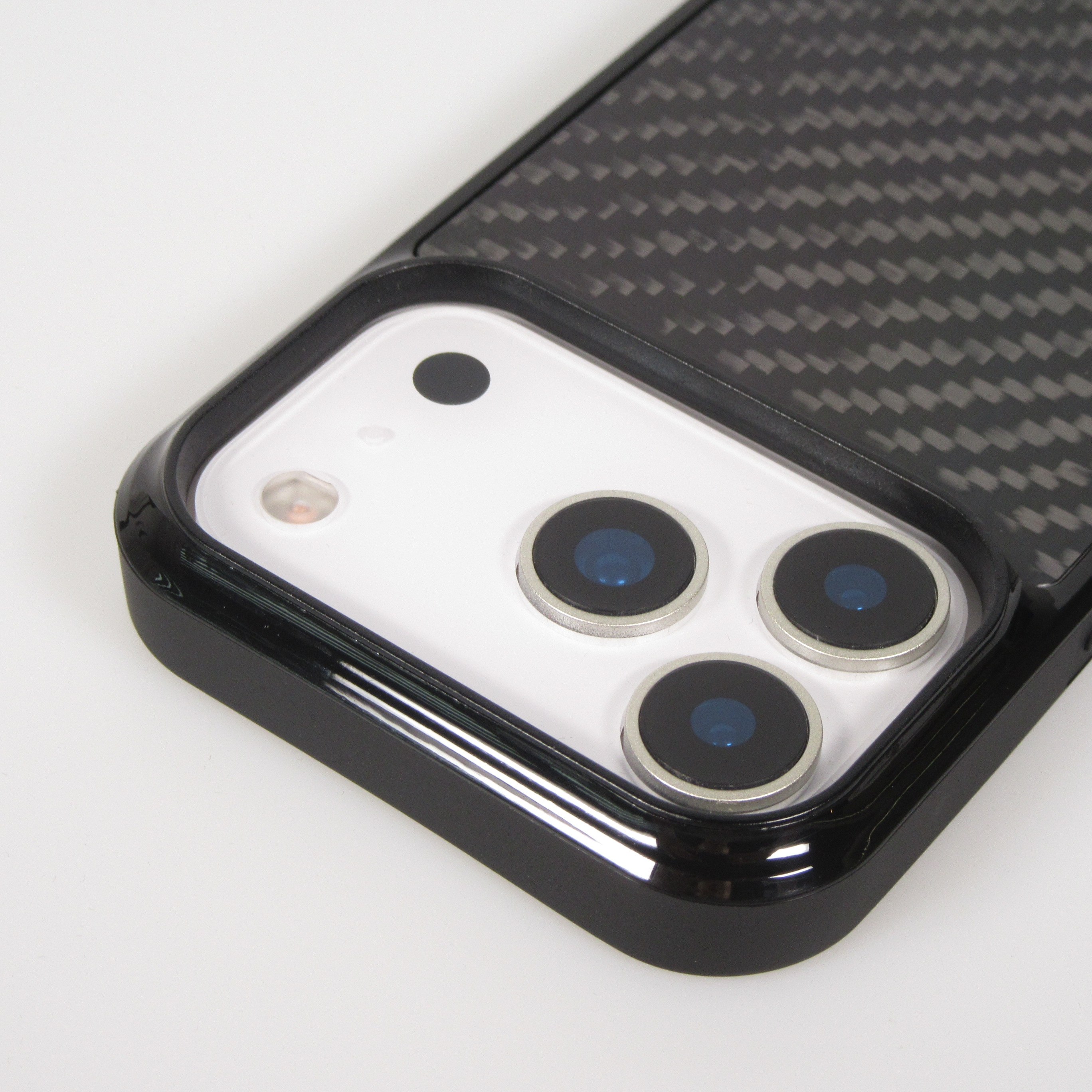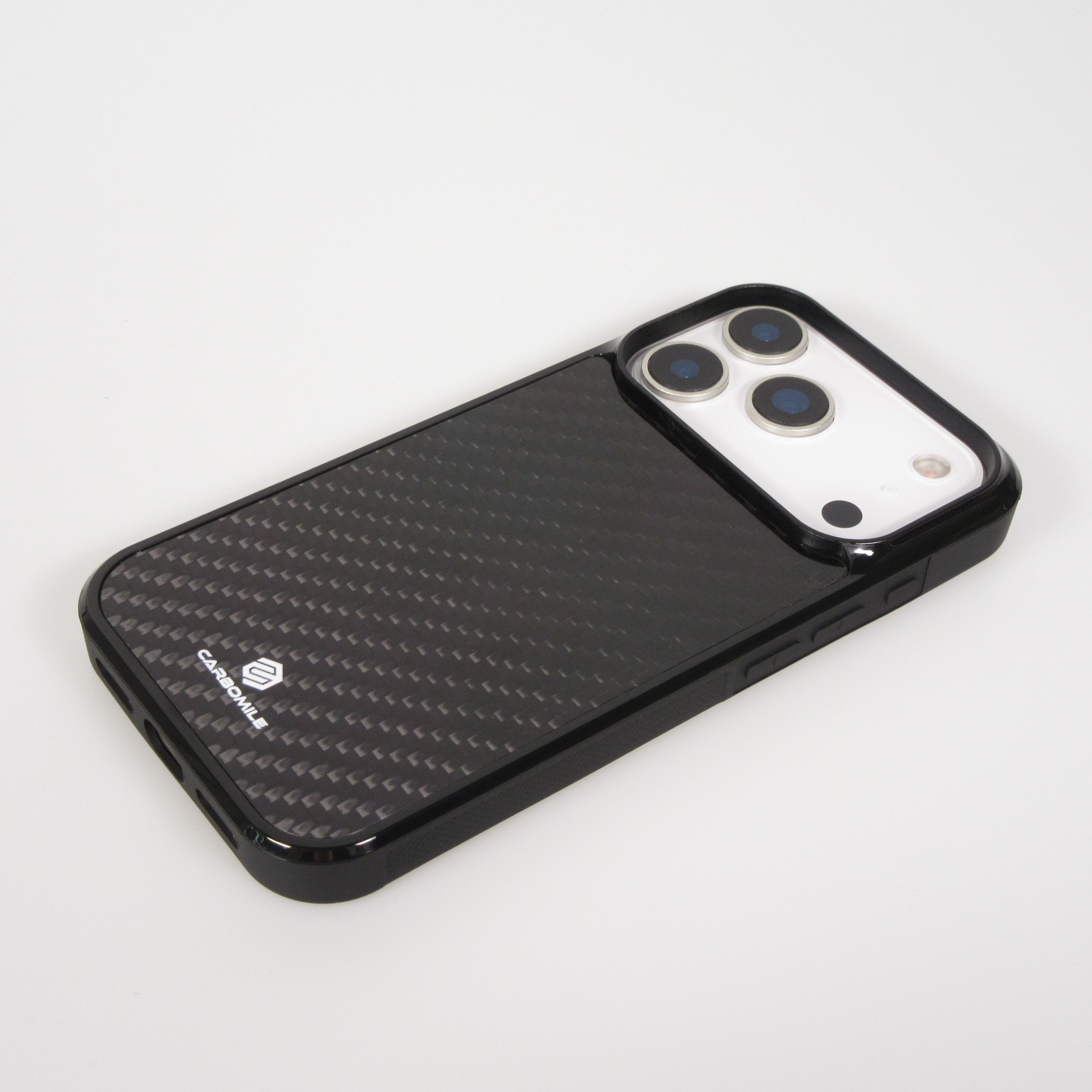Hervorragendes Etui der Marke Carbomile aus echten Kohlefasern mit hochwertigen Silikonkanten für zusätzlichen Schutz. Dieser Schutz mit einem entschlossenen Renn-Look verwendet dieselben prestigeträchtigen Materialien, die Sie in vielen Sportwagen (Porsche, Ferrari, Lamborghini) finden können. Da diese Schalen aus echtem Kohlenstoff bestehen, ist jedes der Carbomile-Teile zu 100% einzigartig.