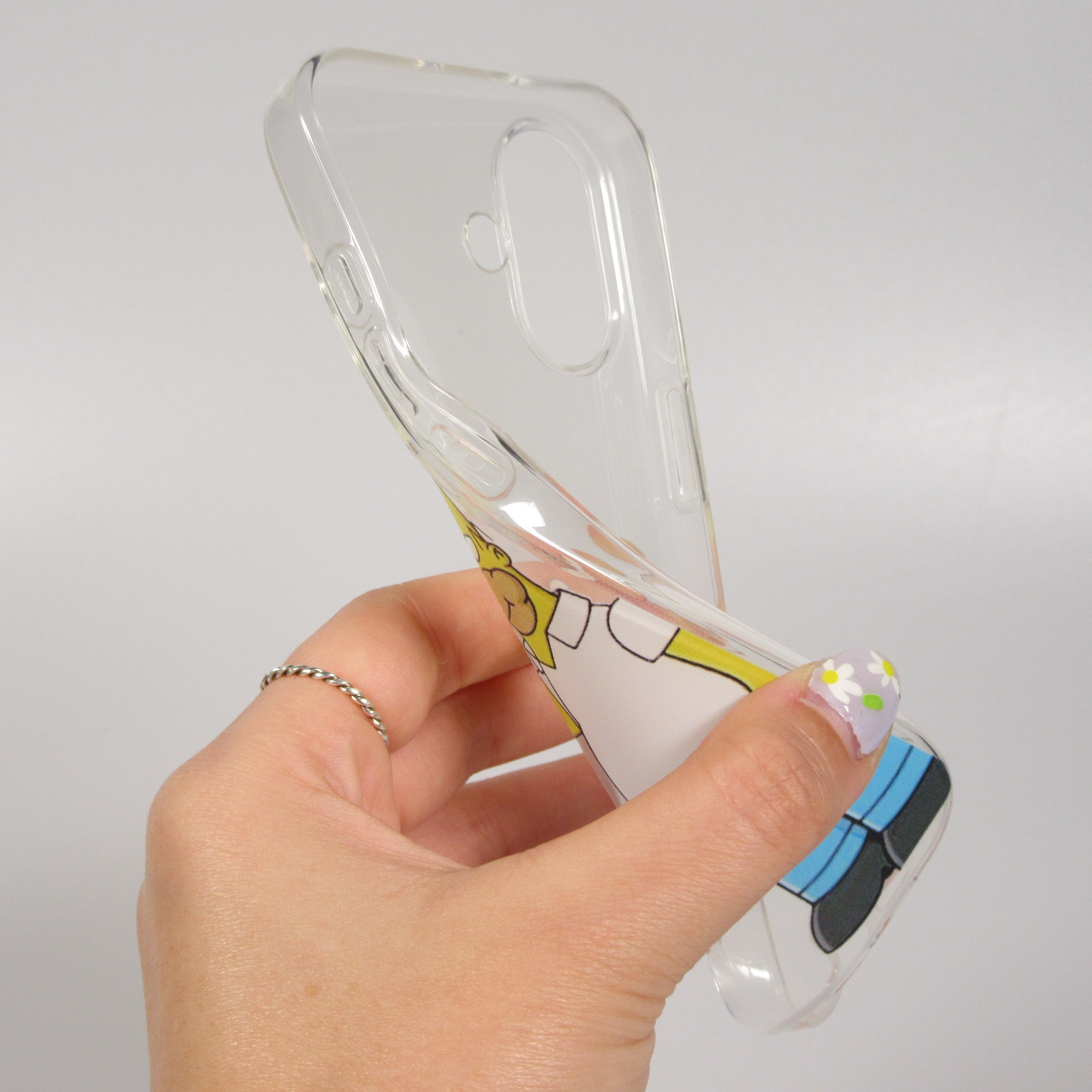 Hier isst Homer nicht einen leckeren Donugt, sondern beisst direkt in das Apple Logo. Diese witzige Hülle mit der kultigen Figur Homer von "Die Simpsons" ist perfekt an das iPhone 17 angepasst. Sie ist leicht und aus flexiblem Silikon, welches ganz einfach am Smartphone angebracht wird. Die Abbildung Homers ist so aufgedruckt, dass er das Apple Logo in der Hand hält.