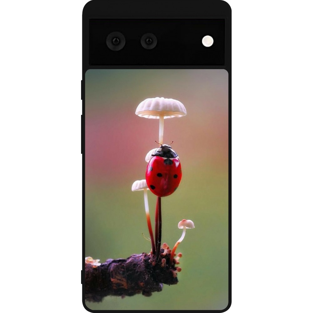Google Pixel 6 Case Hülle - Silikon schwarz Ladybird on a mushroom 2026