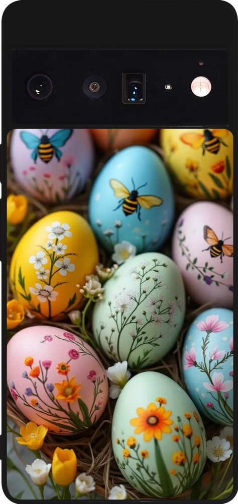 Google Pixel 6 Pro Case Hülle - Silikon schwarz Easter 2026 Eggs with bees