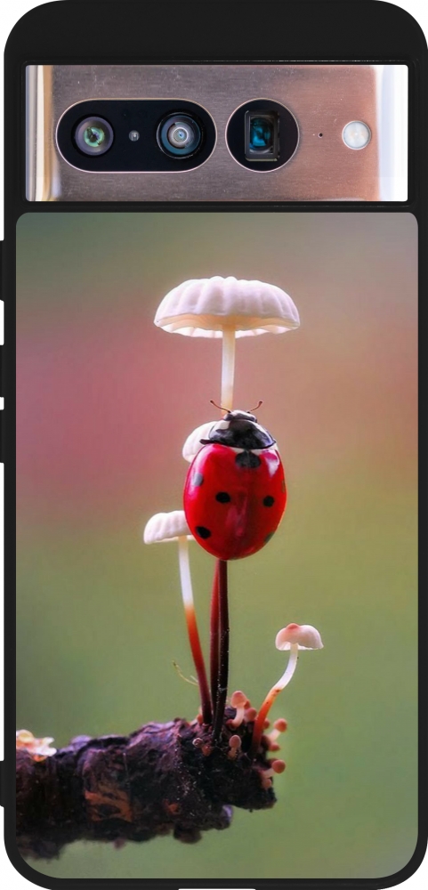 Google Pixel 8 Case Hülle - Silikon schwarz Ladybird on a mushroom 2026