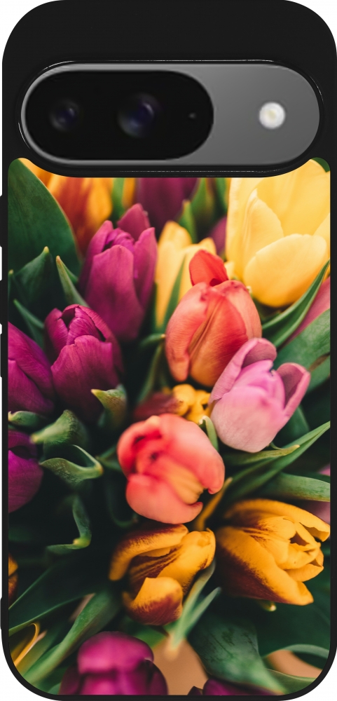 Google Pixel 9 / Pixel 9 Pro Case Hülle - Silikon schwarz Bouquet of tulips 2026