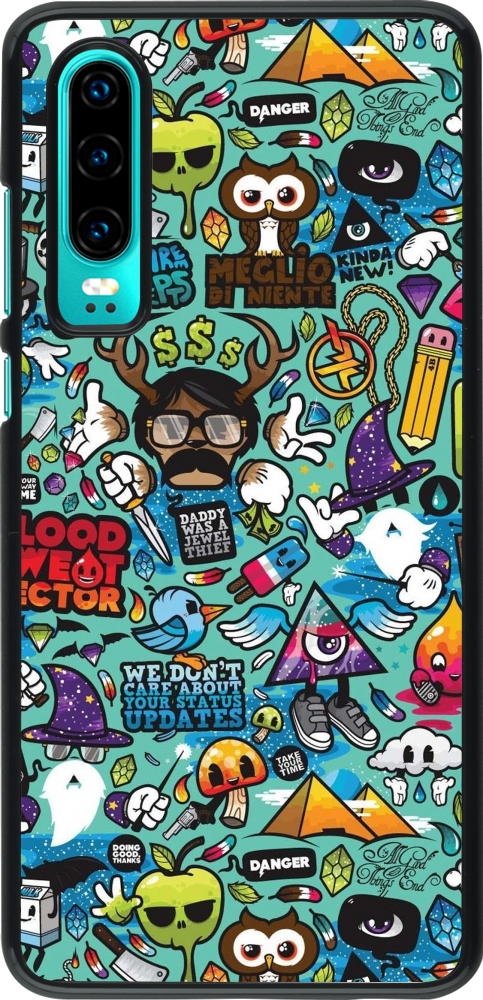 Huawei P30 Case Hülle - Mixed Cartoons Turquoise