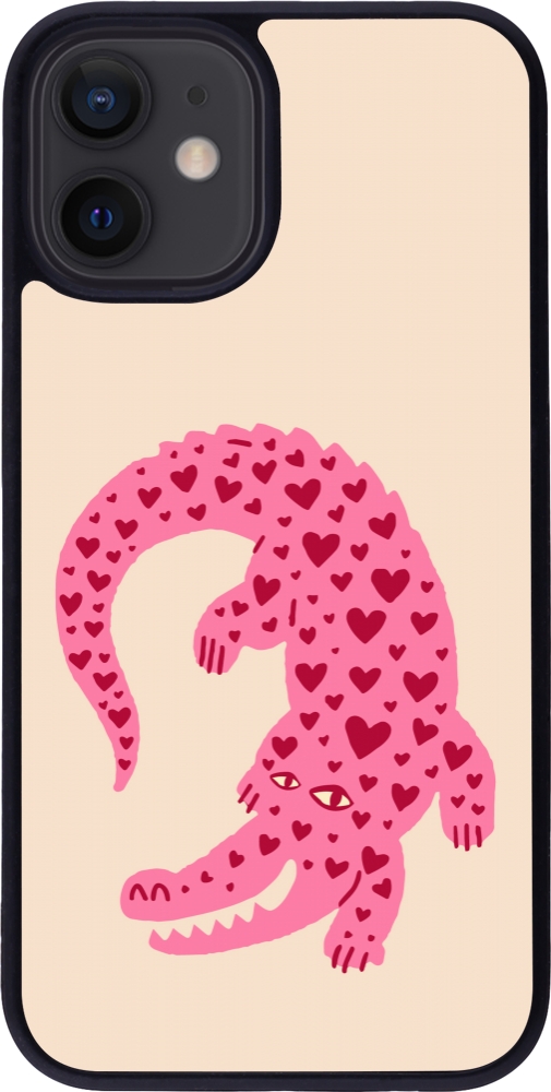 iPhone 12 mini Case Hülle - Silikon schwarz Pink crocodile 2026