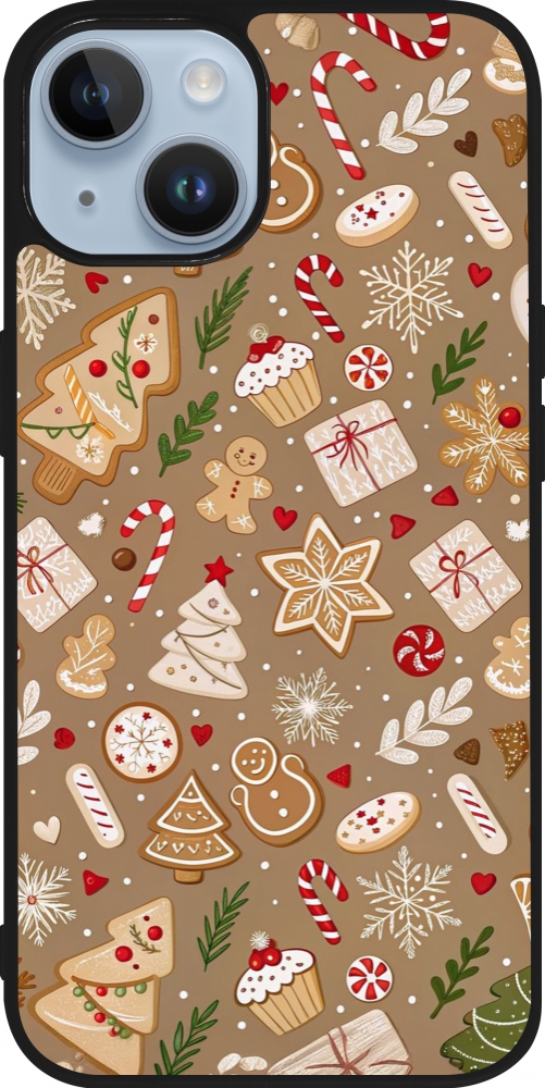 iPhone 15 Case Hülle - Silikon schwarz Christmas 25 Pattern Ginger Cookie