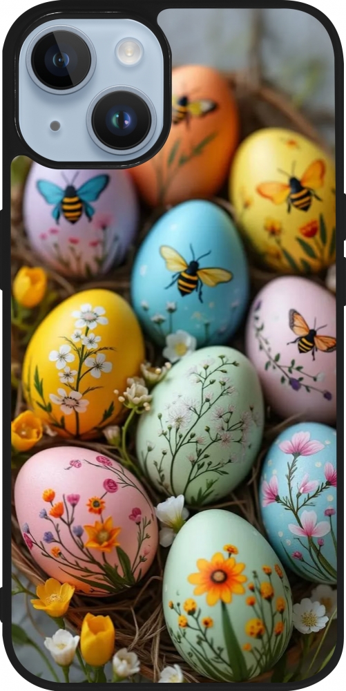 iPhone 15 Case Hülle - Silikon schwarz Easter 2026 Eggs with bees