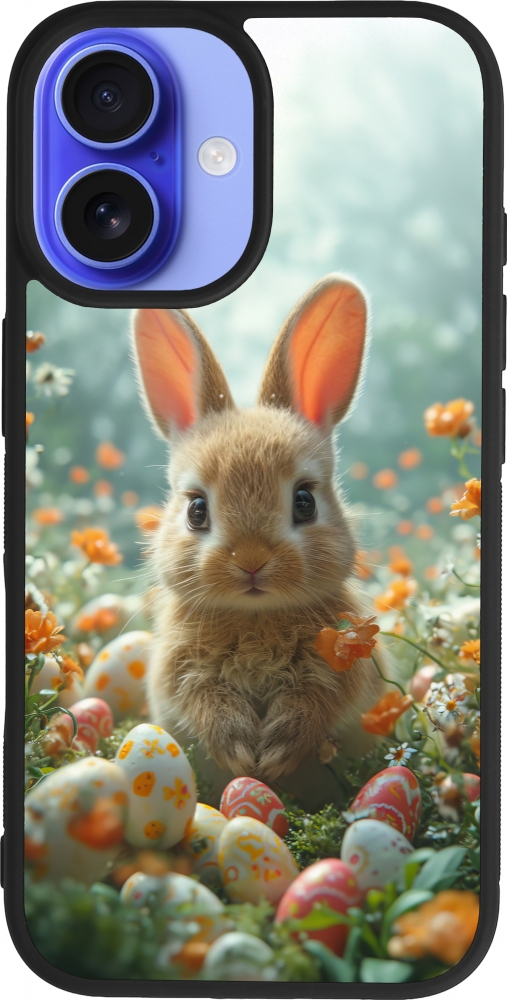 iPhone 16 Case Hülle - Silikon schwarz Easter 2026 Rabbit in the garden