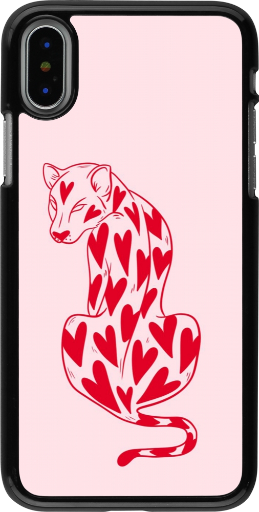 iPhone X / Xs Case Hülle - Leopard with hearts 2026
