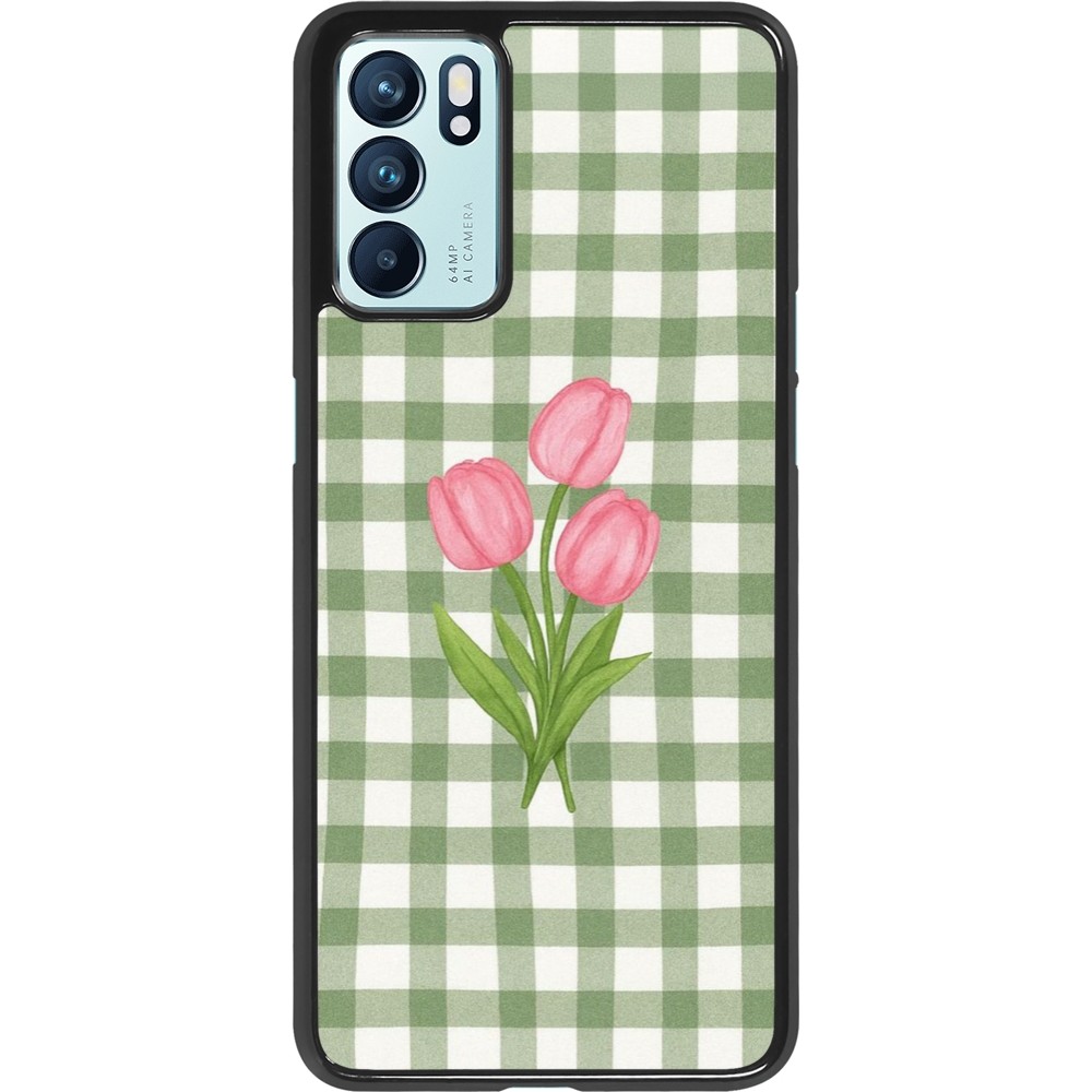 OPPO Reno6 5G Case Hülle - Green vichy tulips 2026