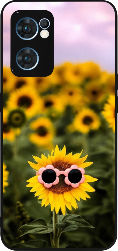 OPPO Reno7 5G Case Hülle - Silikon schwarz Sunflower with glasses Spring 2026