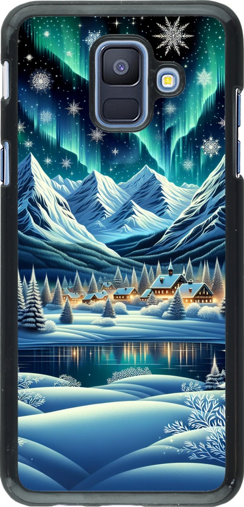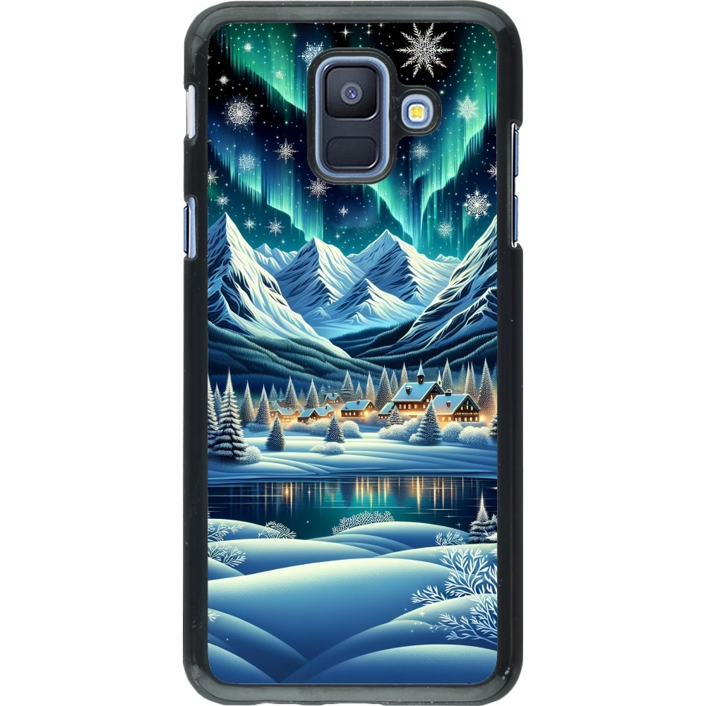 Samsung Galaxy A6 Case Hülle - Verschneites Bergdorf am See in der Nacht