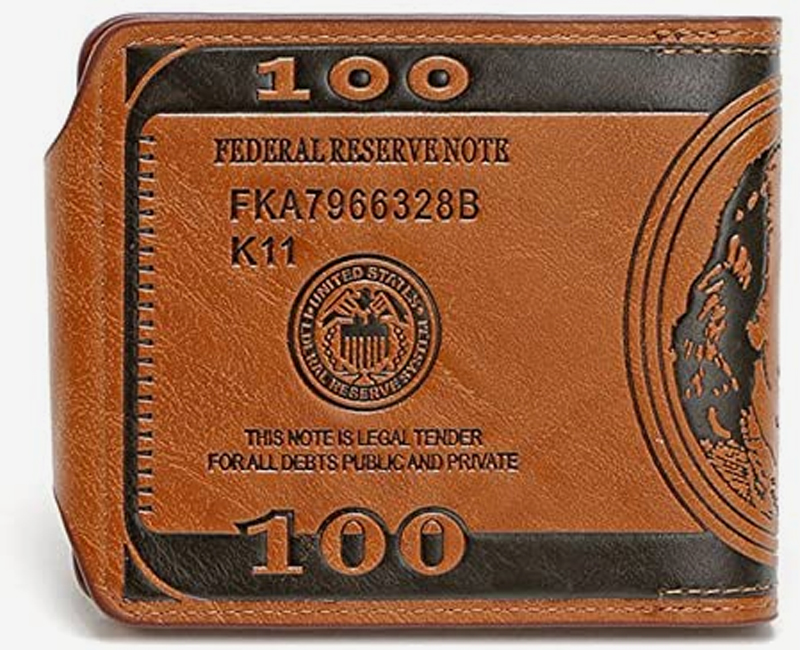 Brieftasche aus Kunstleder im Vintage 100 Dollar Note Design. Passt durch seine Grösse leicht in jede Hosentasche.