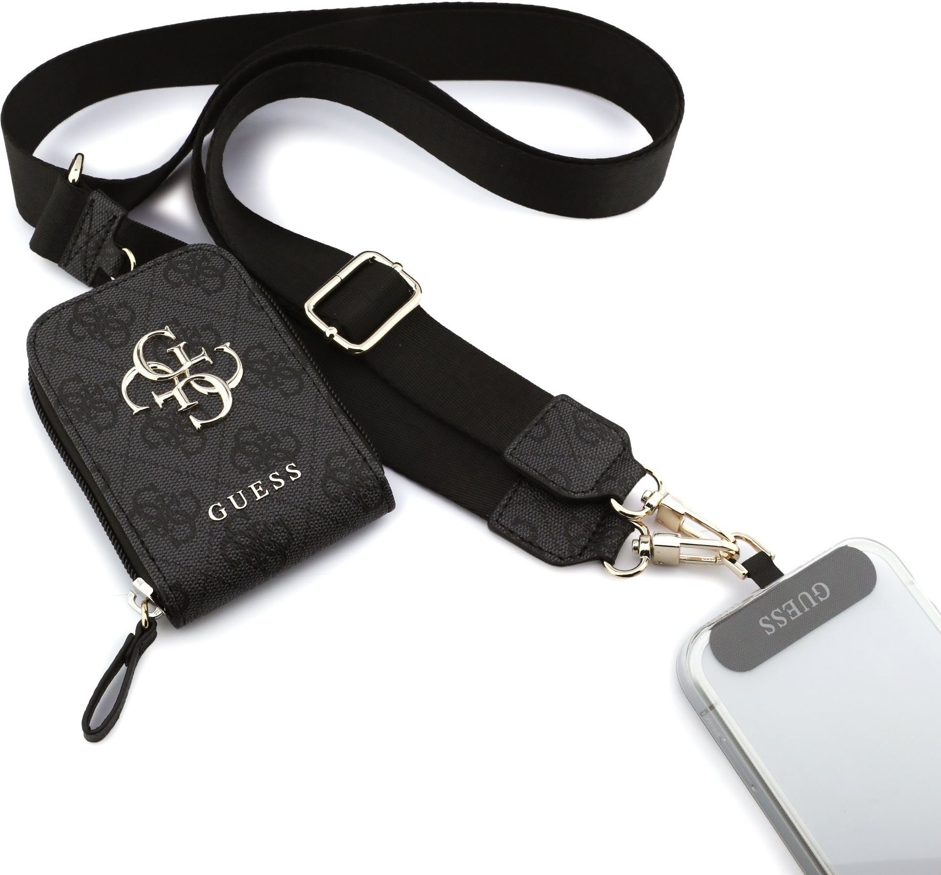 Entdecken Sie das stilvolle Set aus einem Crossbody-Gurt mit 4G-Metall-Logo und einer praktischen Geldbörse von Guess. Dieses elegante Accessoire kombiniert Funktionalität und Stil und ist der ideale Begleiter für jede Gelegenheit. Hergestellt aus hochwertigem, strapazierfähigem PU-Leder bietet es nicht nur ein angenehmes Gefühl, sondern ist auch leicht zu pflegen. Der ikonische 4G-Druck und das auffällige metallische Logo verleihen dem Set einen luxuriösen Look, während die goldenen Details seinen Premium-Charakter unterstreichen.