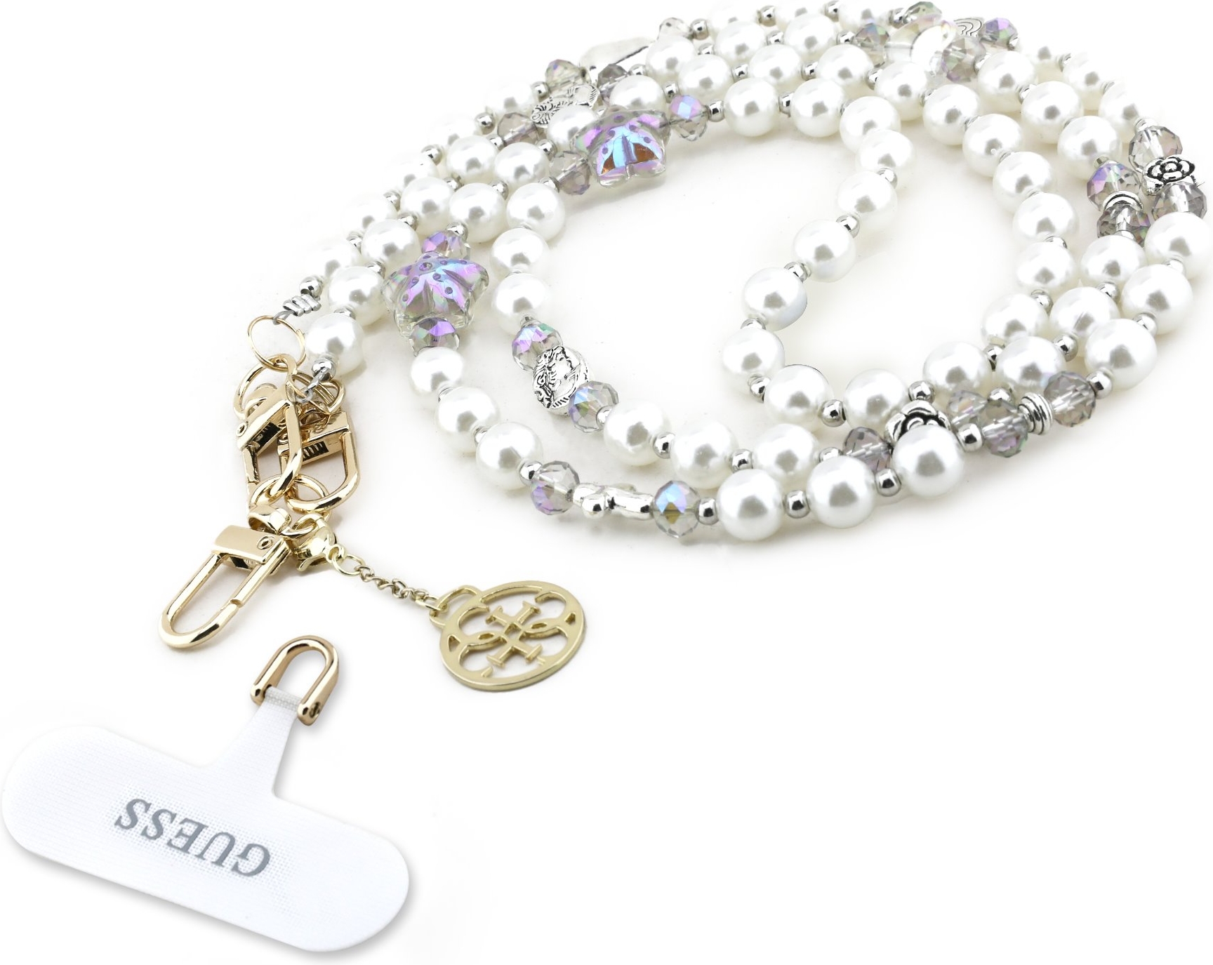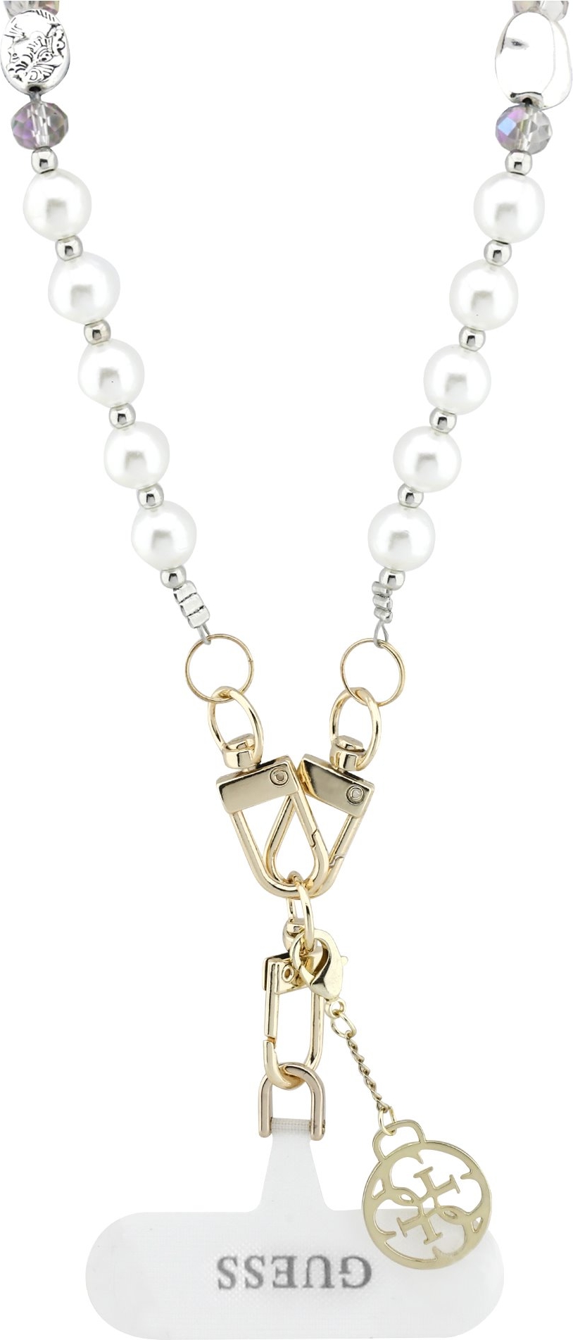 Entdecken Sie den Guess Crossbody Popruh Pearl and 4G Charm – ein elegantes und vielseitiges Accessoire, das Stil, Praktikabilität und Funktionalität vereint. Dieser Crossbody-Gurt ist mit Perlen verziert und mit ikonischen Guess 4G Metallanhängern ausgestattet, die ihm ein luxuriöses Aussehen verleihen. Mit einer Länge von 120 cm passt er perfekt zu allen Marken von Smartphones und wird schnell zu einem unverzichtbaren Bestandteil Ihrer Garderobe.