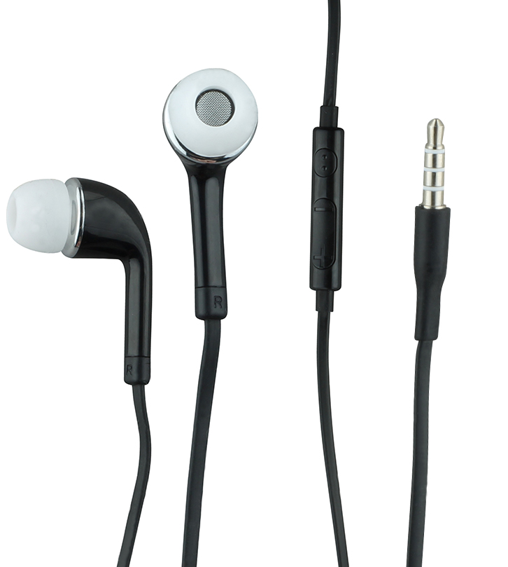 Klassische Kabel-Kopfhörer mit AUX Anschluss. Mit der am Kabel angebrachten Fernbedienung und Mikrofon können Anrufe entgegen genommen werden, ohne dass das Smartphone zur Hand genommen werden muss.