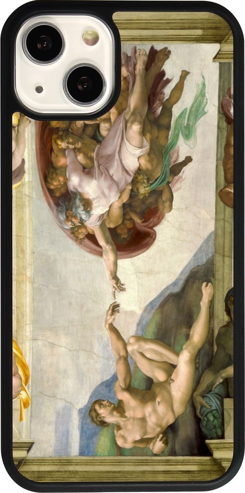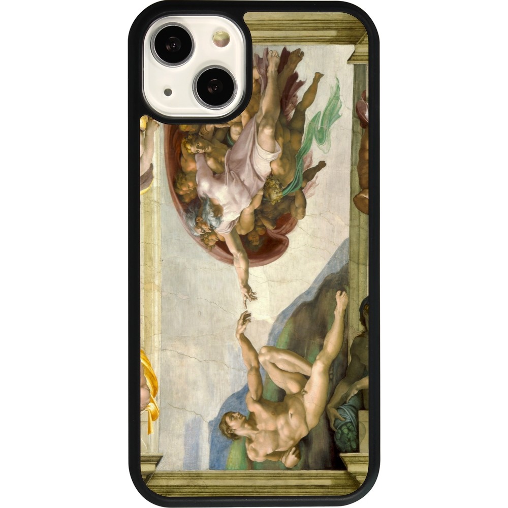 Coque iPhone 13 - Silicone rigide noir Tableau art - La Création d’Adam - Michel-Ange