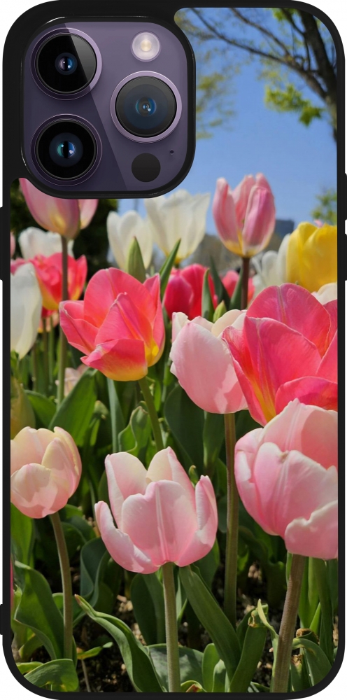 Coque iPhone 15 Pro Max - Silicone rigide noir Tulips 2026
