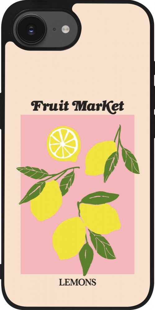 Coque iPhone 17e / 16e - Silicone rigide noir Fruit market lemons 2026