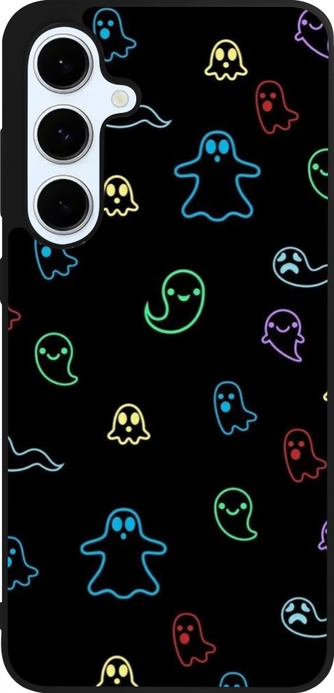 Coque Samsung Galaxy S24 FE - Silicone rigide noir Halloween 2024 colorful ghosts