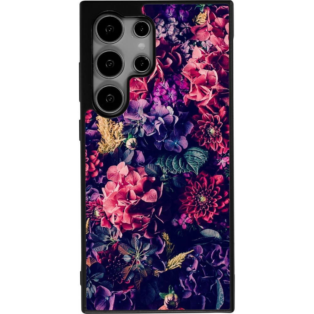 Coque Samsung Galaxy S24 Ultra - Silicone rigide noir Flowers Dark