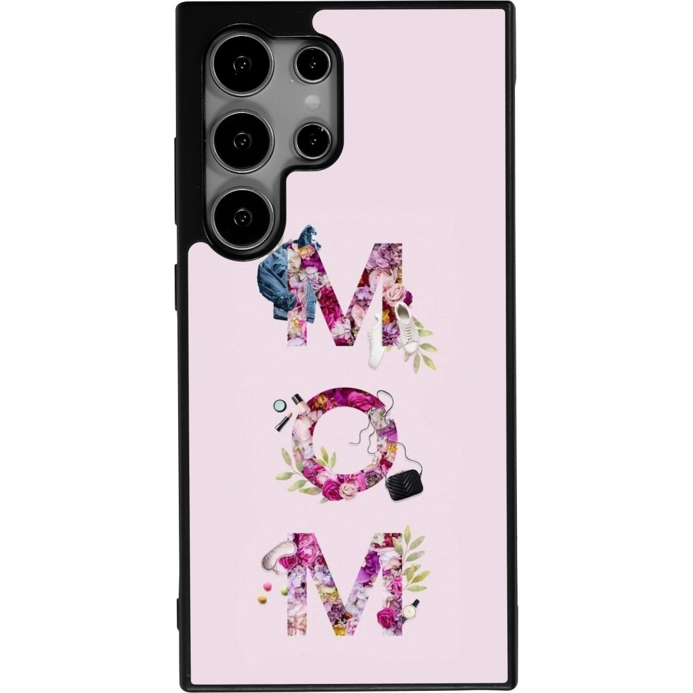 Coque Samsung Galaxy S24 Ultra - Silicone rigide noir Mom 2024 girly mom